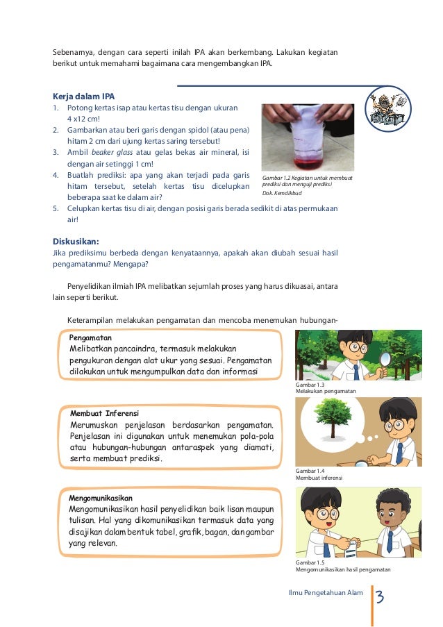Apakah penyelidikan ipa adalah penyelidikan ilmiah? Bagaimana untuk mendapatkan data ilmiah ipa? Di bawah ini terdapat gambar: Jul 02, 2020 · obyek ipa. Tahapan yang dilakukan dalam metode ilmiah adalah melakukan pengamatan (observasi), mengajukan pertanyaan, membuat hipotesis atau disebut dugaan sementara, membuat prediksi, dan melakukan eksperimen. Pengamatan tahapan pertama dalam proses penyelidikan ipa adalah pengamatan. Obyek tersebut dapat berupa benda yang sangat kecil (renik), contoh bakteri, virus, partikel penyusun atom; Gambar proses penyelidikan ilmiah ipa yang benar secara berurutan adalah …. Seorang siswa memperoleh data penyelidikan seperti di bawah ini : Pengamatan, inferensi dan komunikasi c. Dec 03, 2019 · i. Pilihlah salah satu jawaban dari a, b, c, atau d yang paling benar! Inferensi, pengamatan dan komunikasi d.